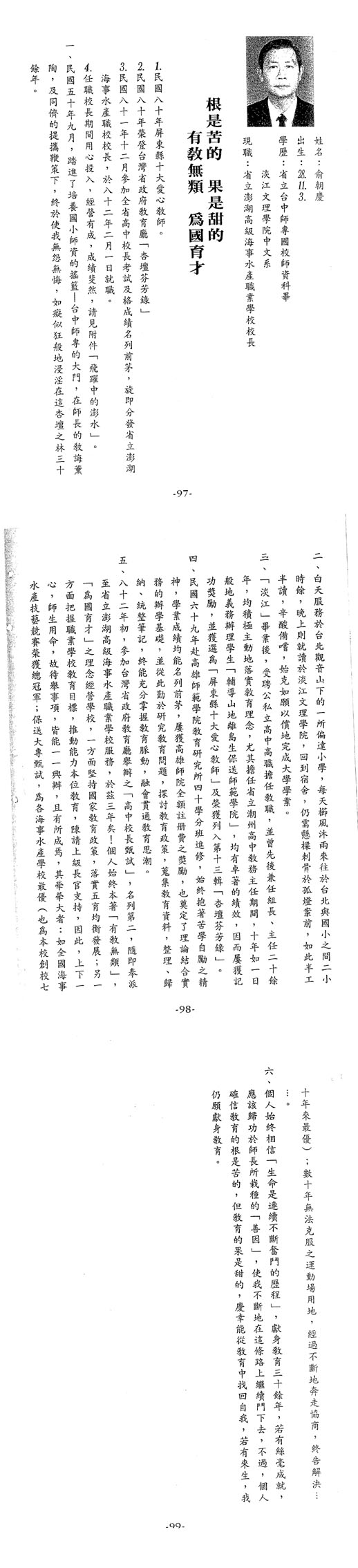 | 傑出校友 | 第5屆傑出校友(04) | 俞朝慶 曾岐南 陳紫祥 張昭信 蔡裕松 |