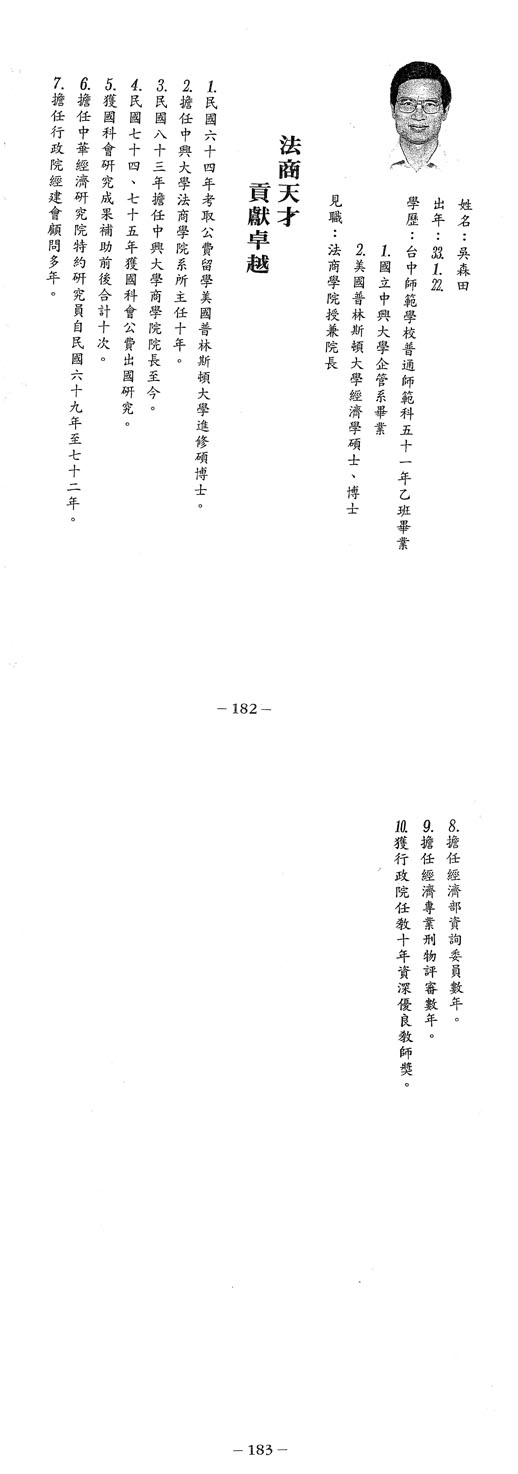 | 傑出校友 | 第6屆傑出校友(05) | 吳森田 黃溪南 王英三 柯良彥 蔡榮桐 |
