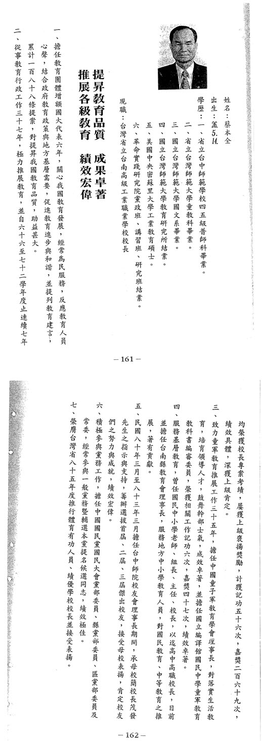 | 傑出校友 | 第6屆傑出校友(03) | 張訓迪 連錦權 蔡本全 謝春喜 吳順發 |