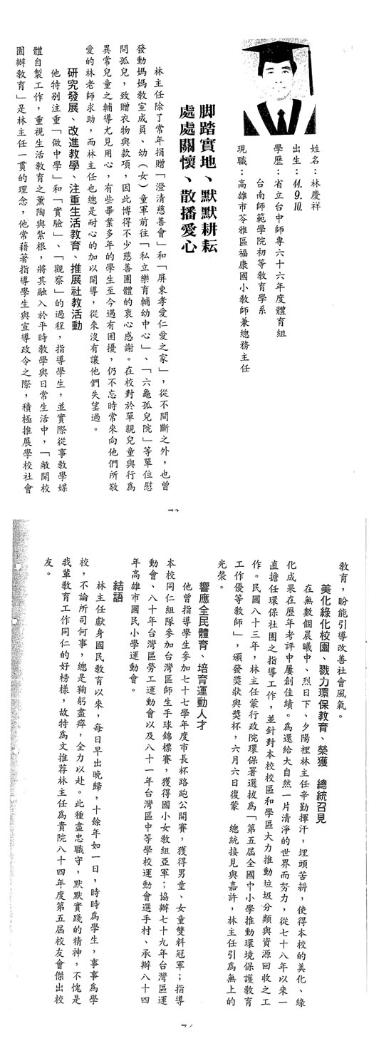 | 傑出校友 | 第6屆傑出校友(02) | 徐璧珠 葉慶發 林淑姬 蔡炳坤 傅國明 |