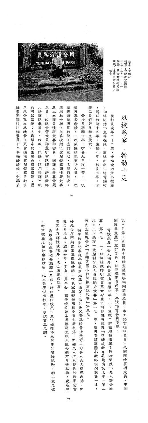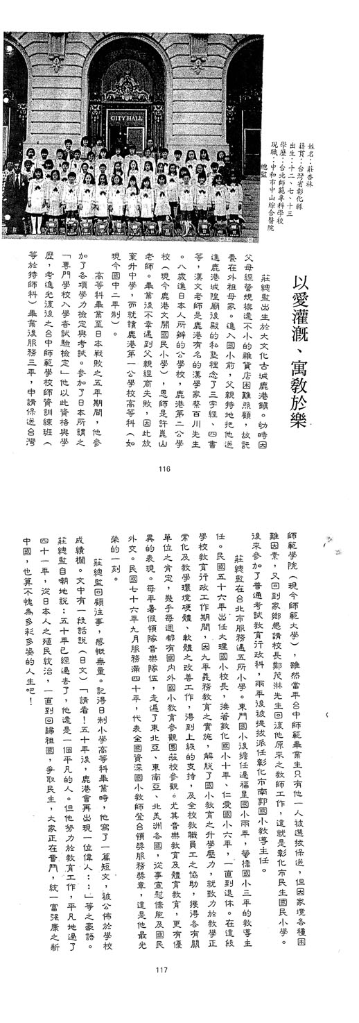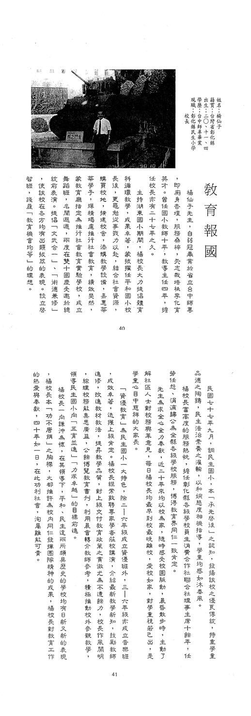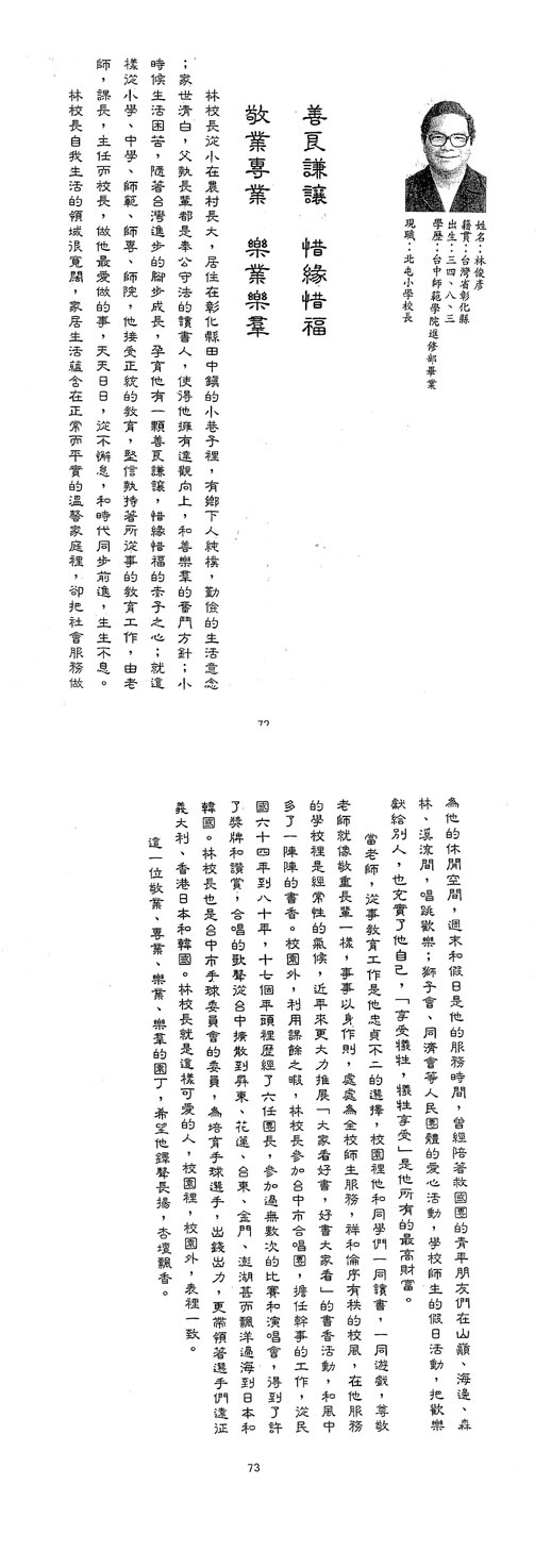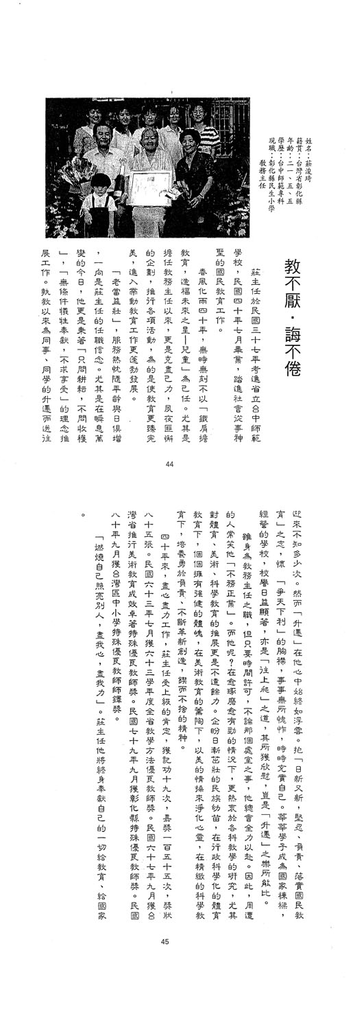 | 傑出校友 | 第1屆傑出校友(04) | 楊仙子 廖天士 莊浚琦 賴慎一 林錦堂 |