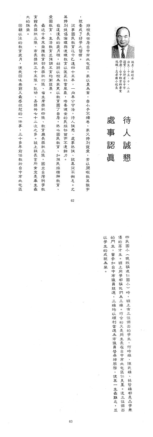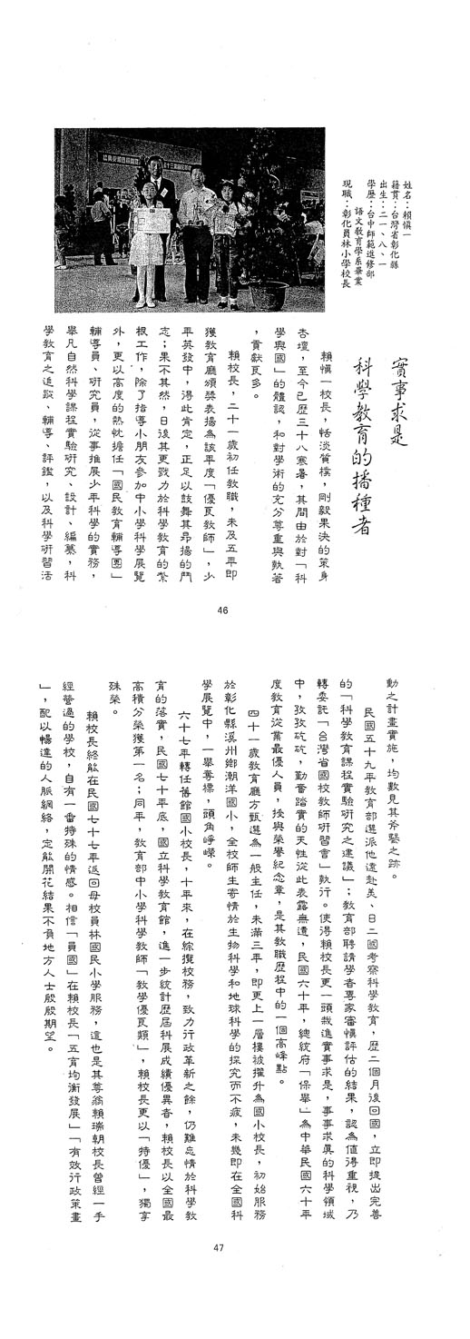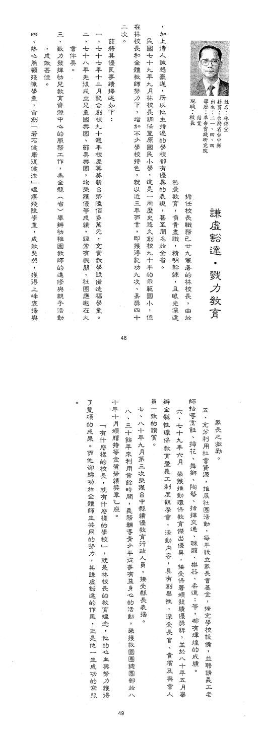 | 傑出校友 | 第1屆傑出校友(03) | 廖德華 蕭鏈富 洪聰慧 洪湘樹 林炳崧 |