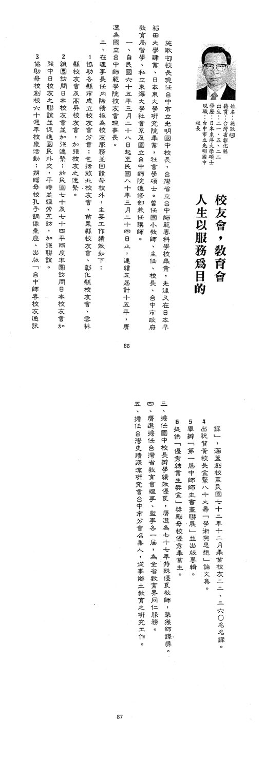 | 傑出校友 | 第1屆傑出校友(08) | 許秀梅 施麗卿 王溫翠鑾 施耿邨 張安然 |