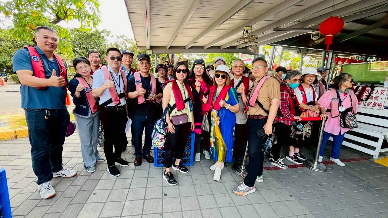 午後二時許遊四草綠色隧道及漫遊周邊,穿上救生衣,依序上遊艇,我們直接閱讀自然,夾岸蓊鬱的紅樹林(水筆仔、欖李)扶疏著,船緩緩前進,我們在畫中行,逢低樹枝時,我們要俯首稱臣而過,驚呼聲歡笑聲響徹雲霄,一隻棲息的夜鷺也能引起騷動,萌發了赤子之心,我們返老還童了。數艘遊艇在水面上穿梭著,我們彼此熱情招呼,樂活寫在盈盈笑意裏,不是黃昏時分,不見絢麗彩霞,不見幻化雲影,但我們享受被水筆仔擁抱的幸福!我們陶醉在台版的亞馬遜河綠色隧道中。